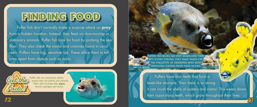 Puffer fish are some very unusual animals. When these odd marine creatures sense danger, they can inflate their bodies three times their normal size to look bigger and scarier. You might not guess it from looking at them, but puffer fish are deadly, poisonous carnivores! Only the poison dart frog has deadlier poison. Sometimes people are poisoned when they eat puffer fish, which are a delicacy in some parts of the world. Readers will be amazed when they dive into this fascinating guide to one of deadliest animals on Earth.