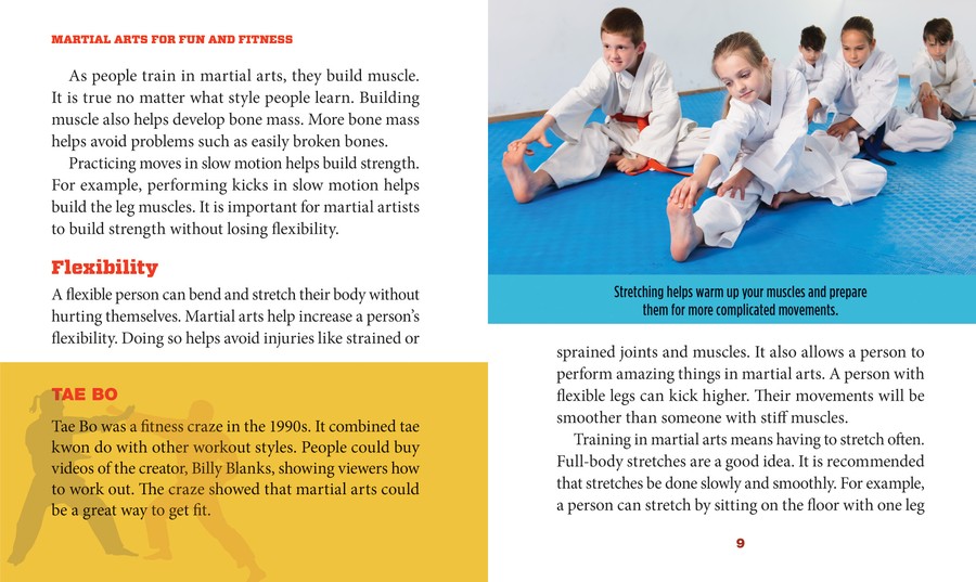Martial arts can improve more than just physical fitness. It can make practitioners think about their body, movements, and mental reactions in entirely new ways. This book explores karate, kung fu, and tae kwon do. Readers will learn about flexibility, balance, and how to get back on their feet after taking a hit. Learning to fall gracefully is half the battle. This guidebook also explores the emphasis that the martial arts place on resolving conflicts without punches or kicks.