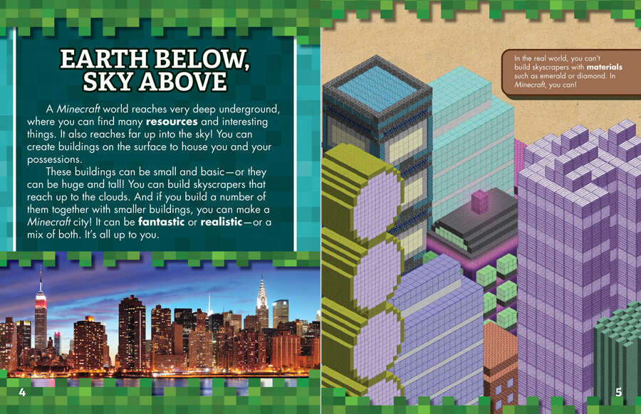 The world of Minecraft is for gamers to create, and a towering skyscraper might be the most impressive feat of all. In this guide, readers find great tips and tricks for making these huge buildings for their cities in the game. The main text Includes connections to real-world engineering and other STEAM concepts, including coding and artistic flair to make each building their own. The text is accompanied by Minecraft illustrations showing what young gamers can accomplish by using their knowledge.